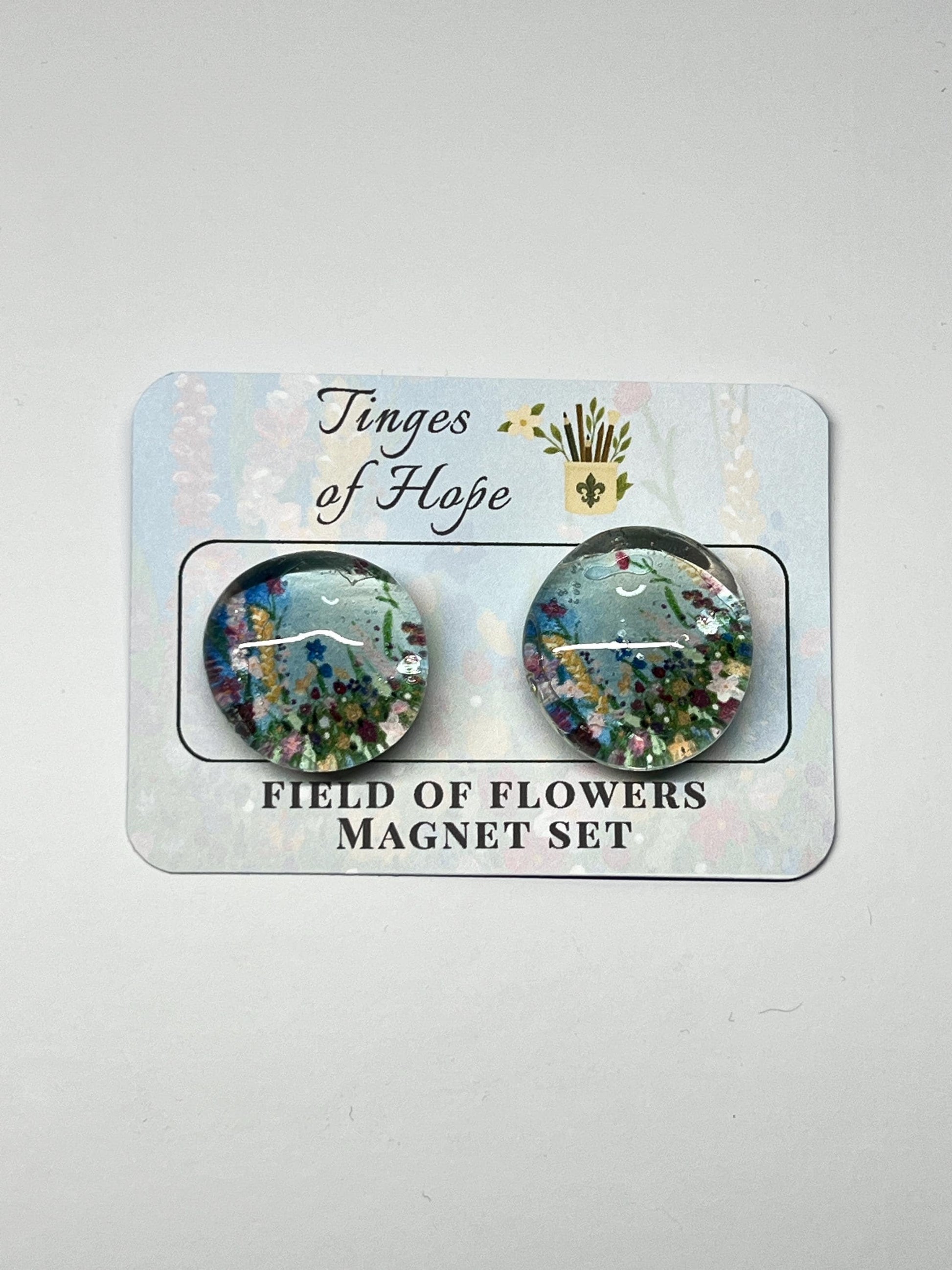 Field of Flowers Magnet Set – Round Glass Floral Art for Fridge & Office