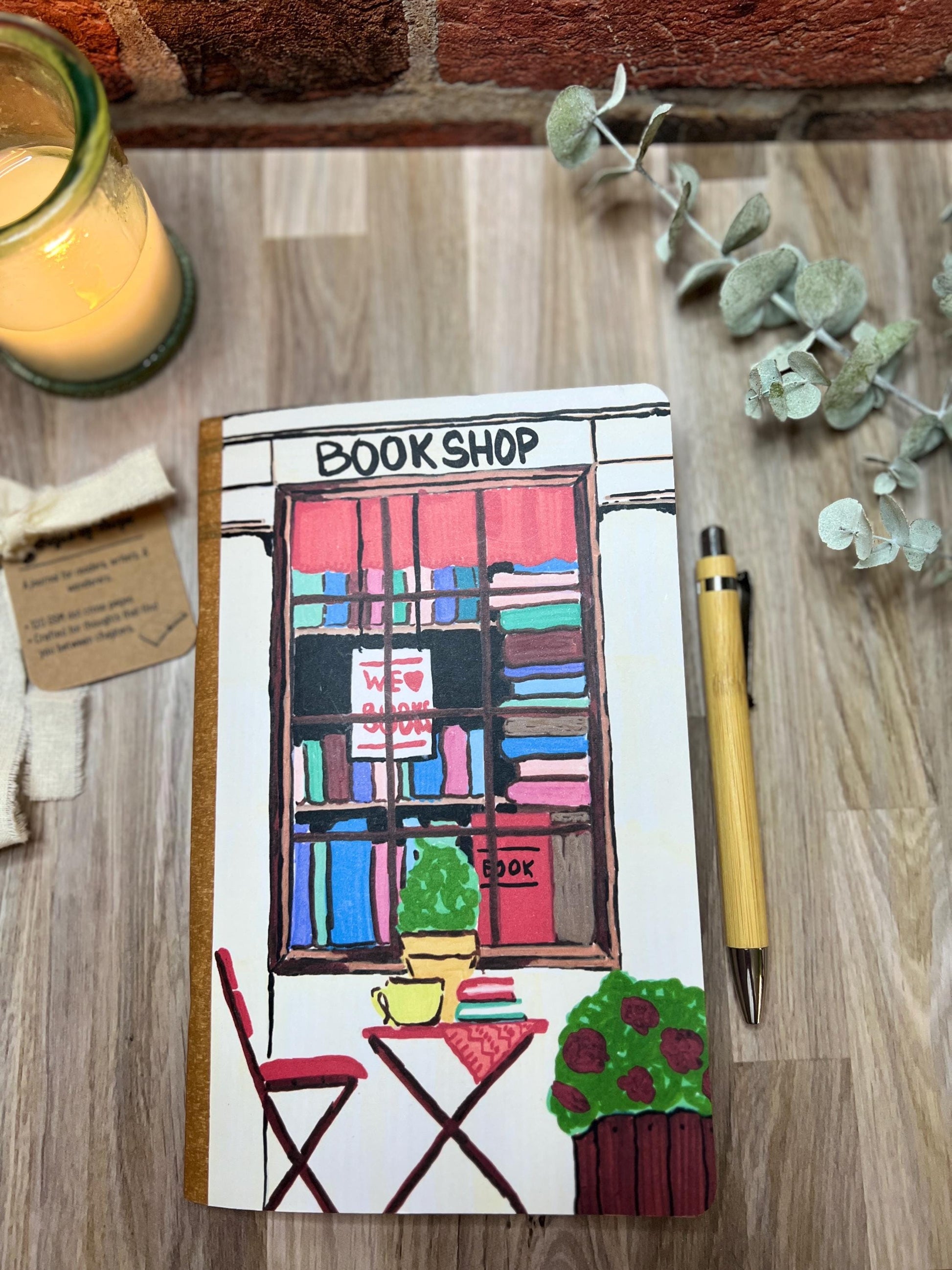 Step into your favorite indie bookstore with this cozy hand-painted bookshop journal. Featuring 50 smooth dot grid pages, it’s perfect for book lovers, writers, and anyone who finds comfort in quiet moments between the pages. Whether you’re journaling your favorite quotes, book club notes, or life stories, this charming design is made to inspire thoughtful reflection and creativity.