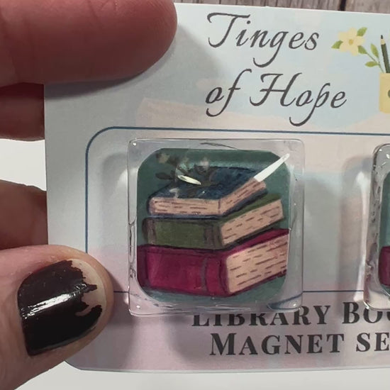 Library Book Magnet Set – 30mm Square Glass Book Stack Art for Fridge & Office